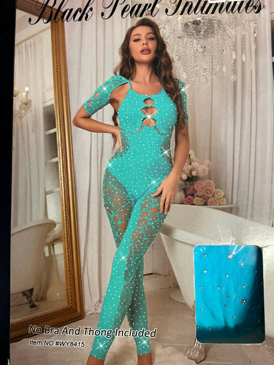 Baby Blue Lace Bling Thick Bodysuit