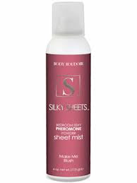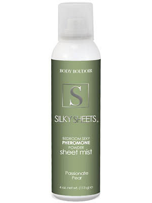 Sex-up boudoir bedding with the silky, sensuous Silky Sheets Pheromone Sheet Mist from Classic Erotica. It's made with a specially designed aerosol delivery system that disperses fragranced powder onto bedding. This sheet mist is the only sheet spray that sprays on dry for luxurious, silky softness. It's made with delightfully fragranced powder mist for a pleasurable sensual experience and provides a luxurious silky-softness to sheets. The spray absorbs sexy body beads of moisture and perspiration during intimate moments. The special non-staining formula is safe for use on sheets. It's infused with a pheromone attractant for sexual arousal. Just spray and play! Blush. A breath of petal softness combines sweet pea & blue violet with a blush of powdery white cedar. Soft-n-sweet...but not too sweet.