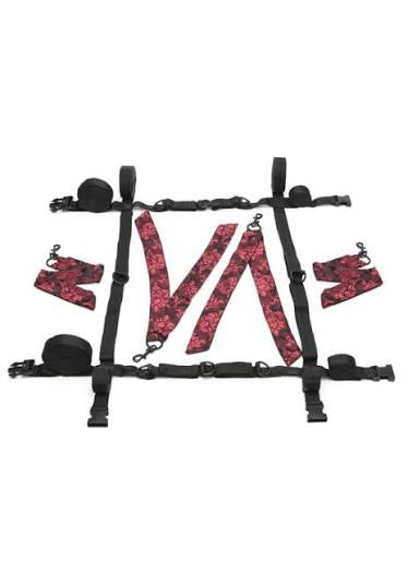 Strap in and open yourself up to sensationally enhanced pleasure with CalExotics Scandal 8 Points of Love Bed Restraint fetish sex toys. The designer bondage sex toy restraints are ideal for seasoned sexual fetish lovers and bashful beginners alike with easy-to-use adjustable straps, versatile tethers and 8 D ring connectors for a variety of sexy bondage positions. The versatile bed restraint has 8 points of connection for both the ankles and wrists cuffs to give your dominant a full view of your sensually exposed body or quickly change your sex position. With universal swivel clasp design on each tether, your lover will be able to take full control over your pleasure and leave you trembling with desire during any bondage sex scene. This luxurious over the bed restraint lets you experiment with passionate power play and get scandalous with 8 points of pleasure.
