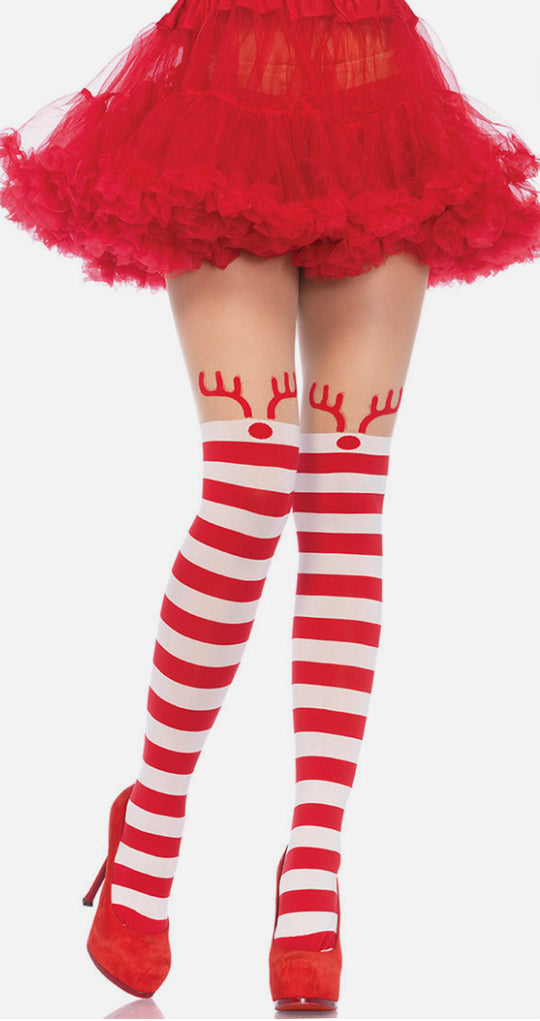 Brand New Rudolph Reindeer Opaque Striped Pantyhose Leg Avenue