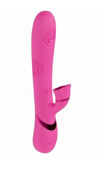 Vive Fiore Silicone Rechargeable Triple Motor G-Spot Air Wave VIbrating and Tapping Flared Clit Vibrator, Pink