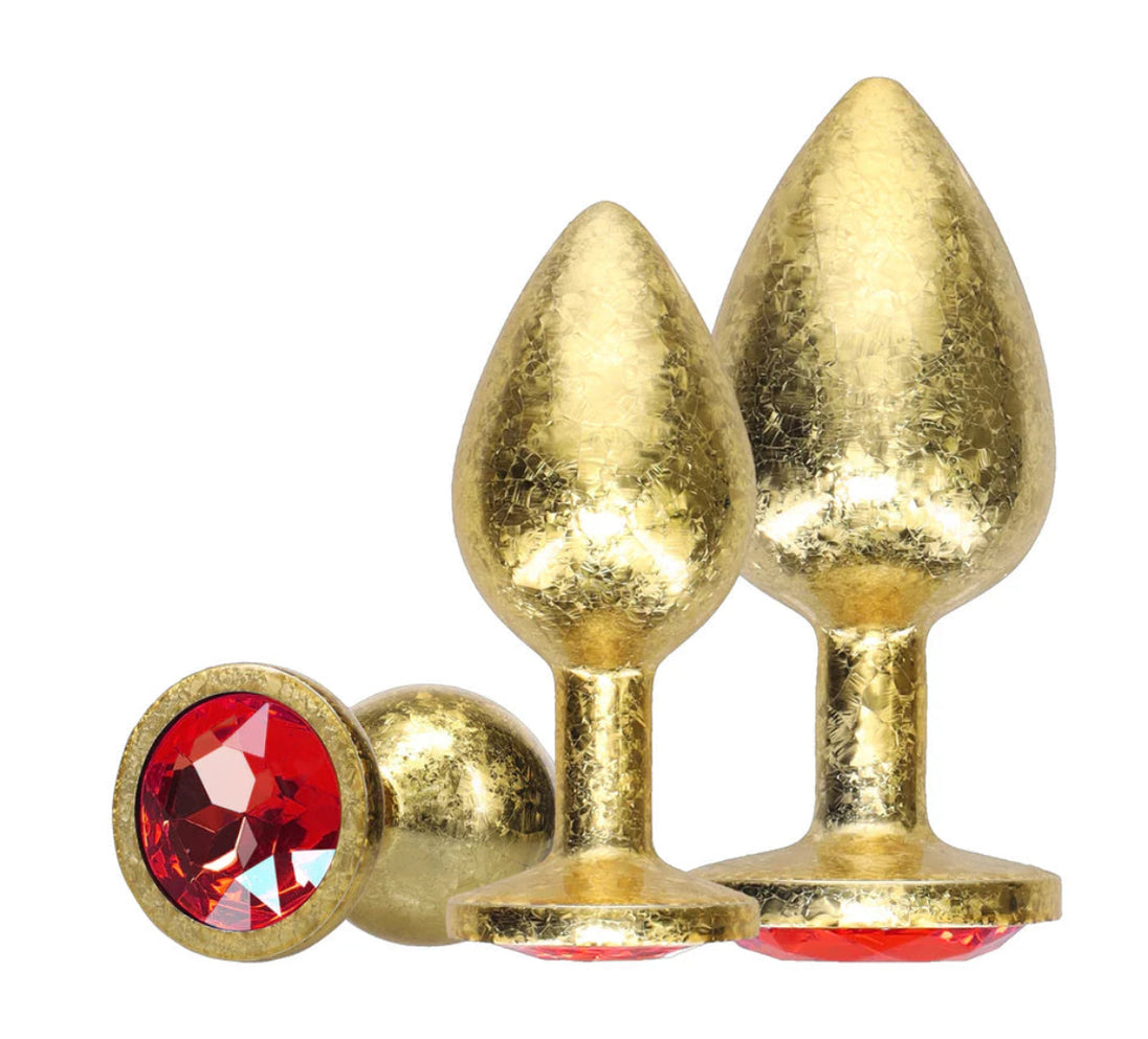 Dive into the charm of the International Milan Collection with this trio of gold-plated metal plugs. Made from smooth aluminum, each piece gleams with a radiant gold hue and glittering jewel accents at the base. Designed with tapered tips for effortless insertion and flared bases for safety, they’re ideal for solo play or sharing the fun. Embrace the thrill of temperature play and treat yourself to a luxurious, playful experience like no other.